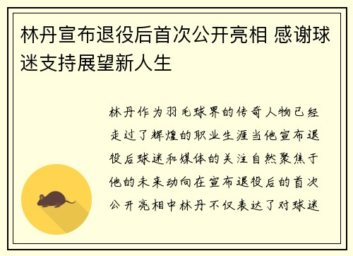 梅西,阿根廷足球的代名词,在职业生涯的巅峰期,带领阿根廷队赢得了期待已久的世界杯冠军。然而,在那一刻的辉煌背后,梅西也做出了一个令人震惊的决定——宣布退役。对于梅西的退役,球迷们无不感慨岁月如歌,纷纷回忆起这位足球天才从青涩少年到顶级球员的奋斗历程。本篇文章将从四个方面详细阐述梅西退役的决定对球迷、...